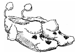 sporting dog, bred to retrieve game from bodies of water. It was German gun dog and was correctly referred to as a Pudel. Well the yappy puff-balls that exist today are a far cry from their hardworking sporting dog roots. If it’s not a sporting dog or a working dog it doesn’t get much respect from us. In the case of the poodle we have rehabilitated these miscreants by fashioning them into French-Poodle Slippers. Tossed aside by frustrated owners and culled by local humane societies, the carcasses of these animals are usually cremated at the taxpayer’s expense. We have broken that wasteful cycle by converting these castaways into cozy comfort for your feet. Good Dog.